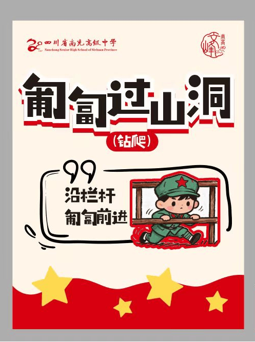 ● “匍匐过山洞”(钻爬):道具模拟匍匐情景,学生们沿绳子缓慢匍匐前进,每一次前进都是对毅力的挑战。